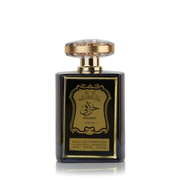 Parfumurile orientale sunt pline de mister, senzualitate si eleganta. Parfum arabesc Lattafa Al Raheeb Khurafi Oud, unisex, 100 ml surprinde simturile asemenea culturii orientale. El se diferentiaza prin notele de varf din Aromatic, Oud ce isi fac rapid simtita prezenta inca de la prima pulverizare. Apoi, inima parfumului cu notele de mijloc din Oud, Note Lemnoase surprind esenta cea mai evidenta a acestuia. Notele de baza din Ambroxan, Cashmeran, Mosc sunt elemente din uleiuri esentiale care nu se evapora si care persista pana la 24 de ore.